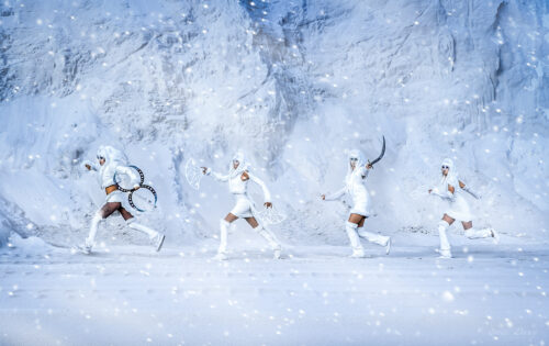Nos déambulations s’adaptent également aux horaires de journée avec des objets colorés remplaçant les leds et les effets pyrotechniques correspondants.