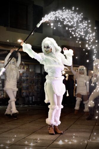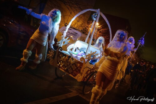 Venues des plaines enneigées du grand Nord, les êtres fantastiques du convoi d’Anapka se baladent dans les rues avec leur char lumineux et musical.