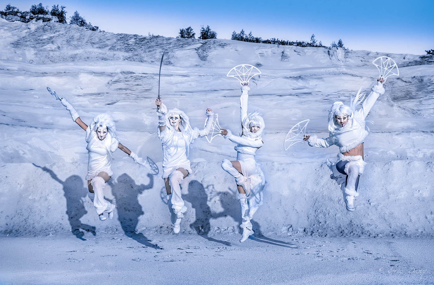 Guidées par leur chamane sur échasses, elles jonglent avec leurs objets lumineux à LED et jouent avec le public.
