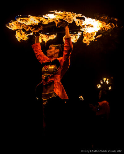 Danses enflammées, nuage de braises, jets de flammes, artifices et autres effets pyrotechniques au service d’un spectacle familial hors du temps !
