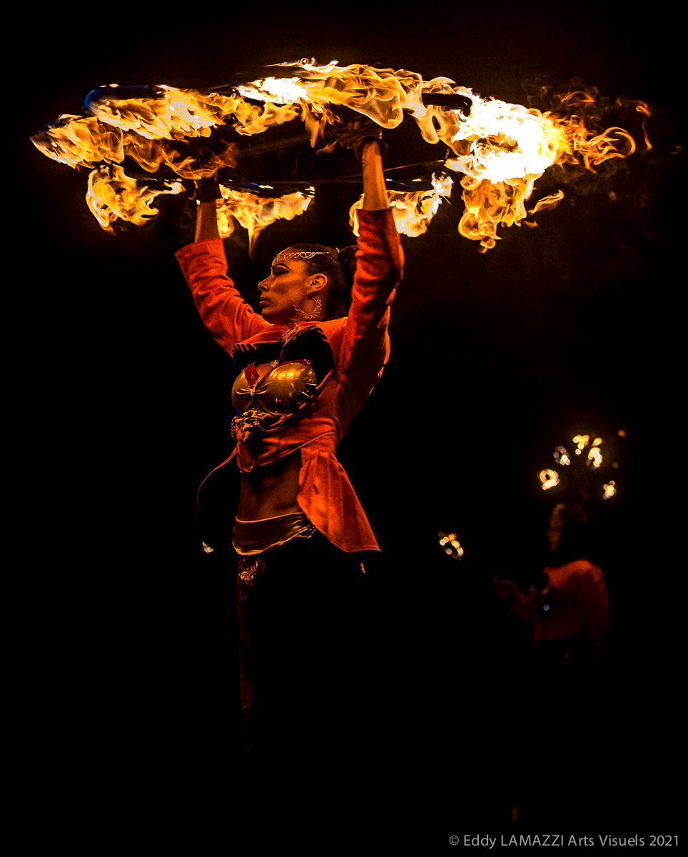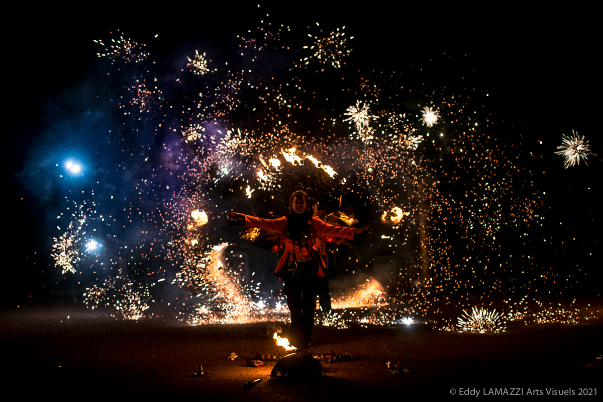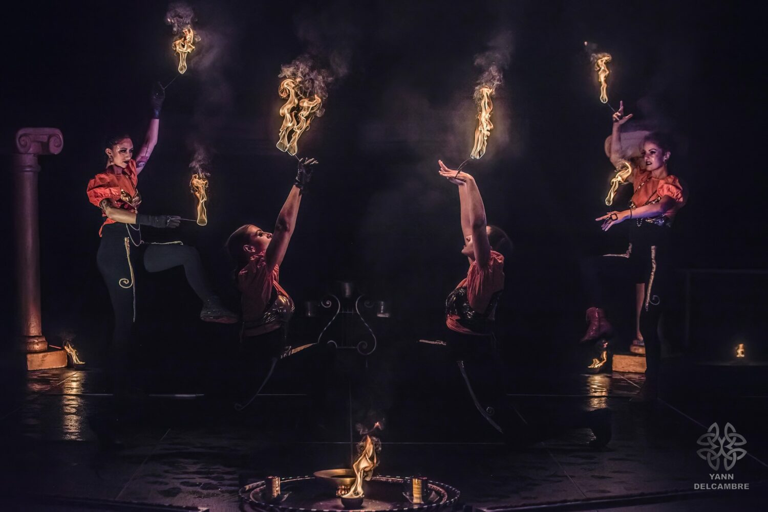 Danses enflammées, nuage de braises, jets de flammes, artifices et autres effets pyrotechniques au service d’un spectacle familial hors du temps !